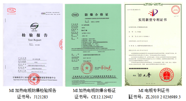 安徽環瑞MI發熱電纜獲得了國家專利證書及石油化工協會頒發的防爆合格證.